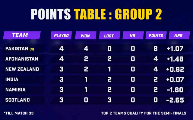 Points are awarded for wins, and Net Run Rate (NRR) often becomes crucial in qualification scenarios.